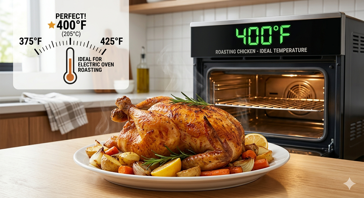 Siguranța alimentelor necesită o temperatură internă de 165°F , indiferent de temperatura cuptorului folosit. În timp ce prăjirea la 400°F este „punctul favorabil” pentru textură, temperatura cuptorului este doar vehiculul pentru a atinge ținta internă sigură. Într-un cuptor electric, trebuie să fii atent la păsările mari (peste 5 lbs); pot necesita o temperatură mai scăzută de 375 ° F pentru a se asigura că centrul este gătit înainte ca pielea să se ardă.